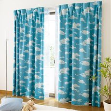 【ネット限定】爽やかなブルーがお部屋のアクセントに! 青空模様のプリントカーテンです。ほどよく光をやわらげ、お部屋が明るく感じられる2級遮光です。