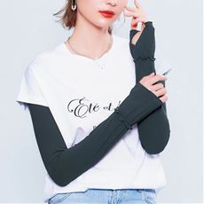 二の腕までカバーできるロング丈アームカバーリブ素材で肌触りもサラリ