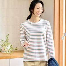 すっきりボーダーは着まわし自在な実力派!程よい厚みで上質感があり、優しく心地よい風合いが魅力の肌ざわりソフトな綿混天竺素材のボーダープルオーバー