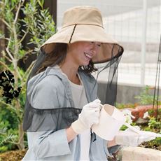 広いつばでしっかり虫よけできるハットです。UVカットと接触冷感+内側メッシュで暑さ対策も。