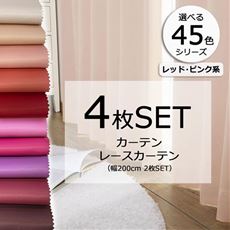 選べる45色シリーズ(レッド・ピンク系)×99サイズ。欲しい機能が揃っている♪ コーディネート要らずの防炎遮光カーテン&UVカットミラーレースカーテンの4枚組セット(幅200cmは2枚組)です。