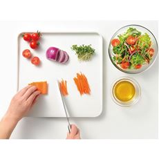 ゆるい傾斜とフチ付きで食材や水分がこぼれにくいまな板